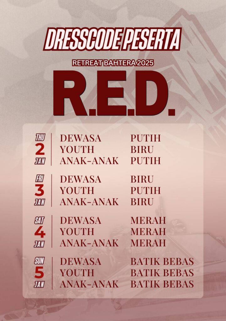 Acara R.E.D ini juga akan disiarkan secara langsung di YouTube channel Bahtera Media Network. Dibawah ini akan tertera secara detail jadwal siaran langsung acara R.E.D dan Anda juga bisa mengaksesnya langsung dengan klik link dibawah ini.